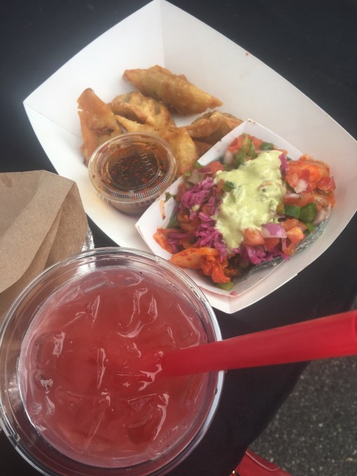 For lunch (or I guess “linner” since we ate lunch at like 4pm), we got food from the food trucks. I had fried dumplings, a Korean fusion taco thingy, and a refreshing yuzu fruity iced tea. Afterwards, I couldn’t resist getting a butterfly pea flower bubble tea with lychee jelly. Everything was delicious (although pricey).